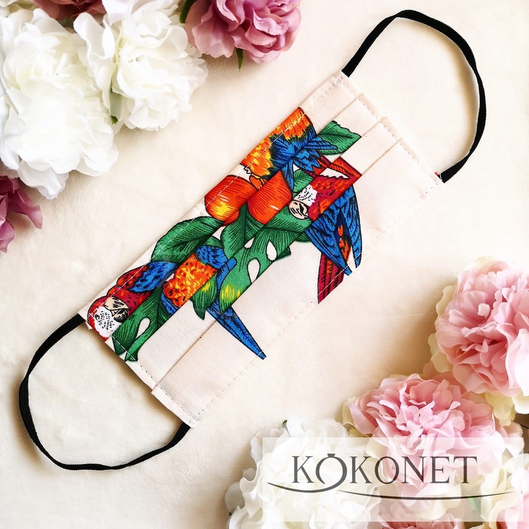 Bežová rouška s papouškem