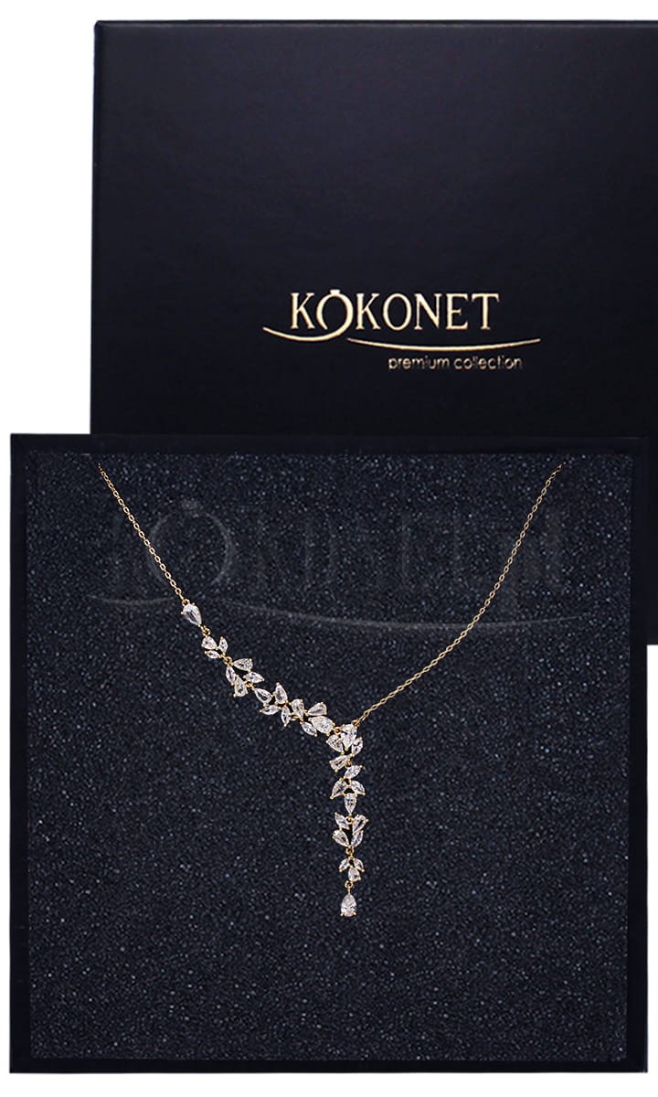Asymetrický zlatý náhrdelník se zářivými lístečky dodá eleganci a podtrhne výjimečnost tvého outfitu. Doporučujeme ho, pokud plánuješ obléct svatební šaty s hlubokým výstřihem, aby krásně vynikl a doplnil look, nebo v případě uzavřených svatebních šatů, pokud chceš přidat trochu lesku a oživit je. Jeho tvar je velmi lehký a vypadá nesmírně elegantně.