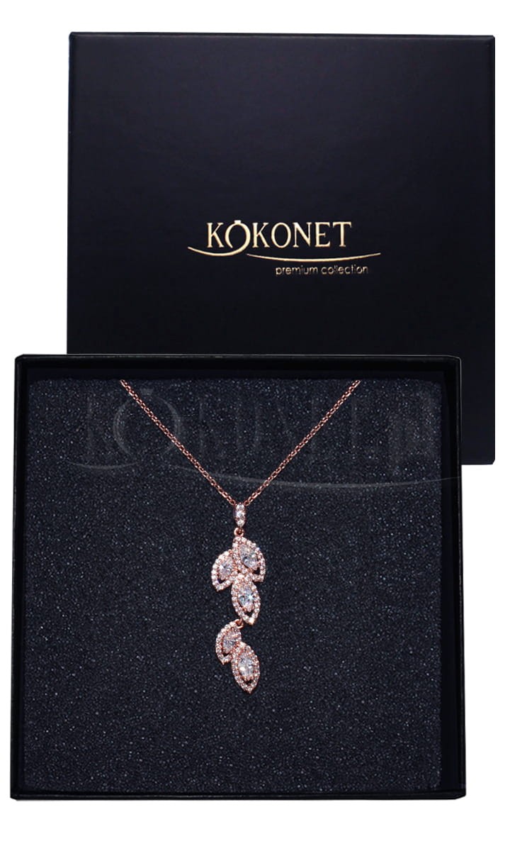 Pokud hledáte ozdobu pro svùj dekolt ve stylu boho glam, jste na správném místì. Náhrdelník CHIARA v krásné barvì rùžového zlata s motivem tøpytivých lístkù doplní mnoho svatebních stylizací, zahalí je do lesku a dodá jim romantický charakter. K náhrdelníku na spodní èásti stránky najdete také ladící náušnice a náramek.