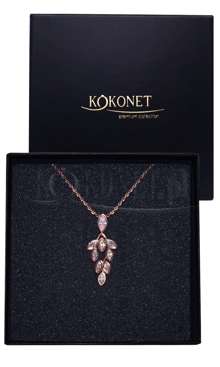 Elegantní svatební náhrdelník v barvì rùžového zlata s lesklými lístky v boho glam stylu tvoøí dokonalý pár s náušnicemi ze stejné kolekce. Speciálnì zvolená barva rùžového zlata pùsobí velmi pøirozenì a efektnì.