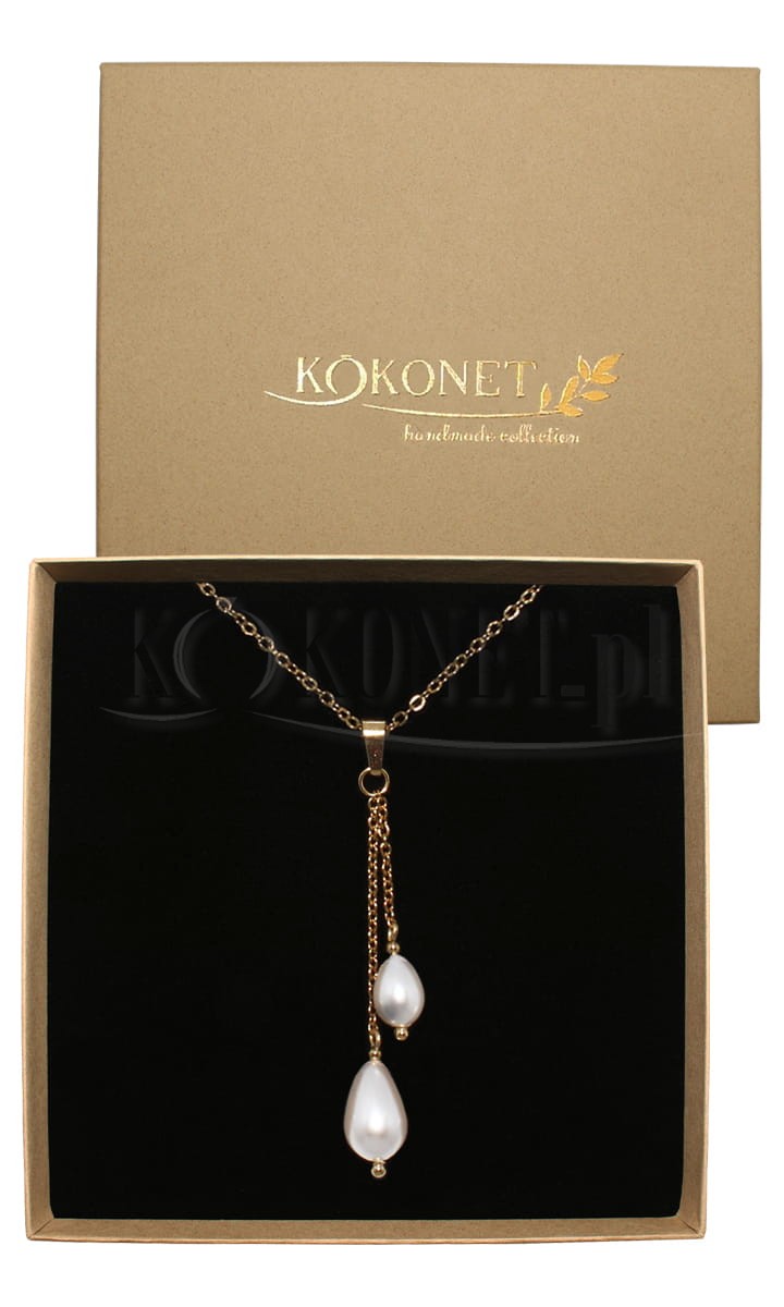 Dlouhý zlatý øetízek s visící pøívìskem z perel ve tvaru kapek opticky zeštíhluje postavu a zdùrazòuje charakter stylizace. Nasaïte ho, pokud má šaty hluboký výstøih a chcete je ozdobit vkusnou bižuterií. Perly se lesknou saténovým leskem a dodávají šarm.