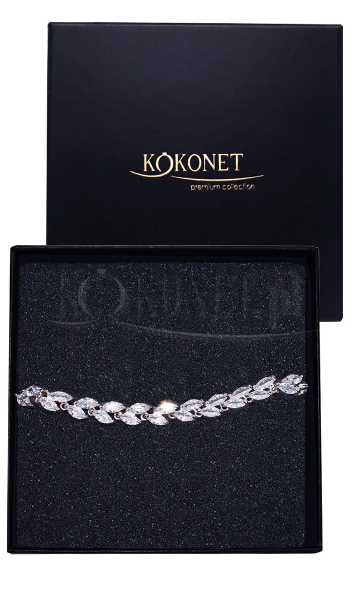 Svatební stříbrný náramek ROSANA je nejčastěji vybíraným vzorem v celé naší nabídce - a to díky velmi univerzálnímu tvaru lístků použitých v tomto designu. Náramek není regulovatelný, po celém obvodu zdobený zirkony, čímž se stává elegantním doplňkem pro styling. Je vybírán především pro jemné a přirozené styly, kde stačí jen doplnit vzhled.