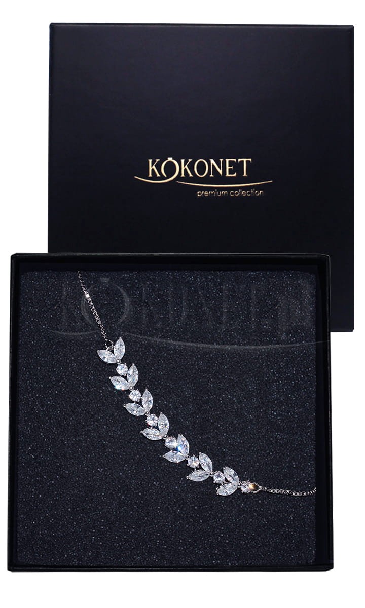 Speciálně navržená šperkařská slitina, hypoalergenní, chráněná proti zčernání vrstvou rodu. Vysokou estetiku zajišťují zirkony broušené šestiúhelníkově třídy AAA+ ručně osazované. Logo KOKONET zaručuje vysokou kvalitu!