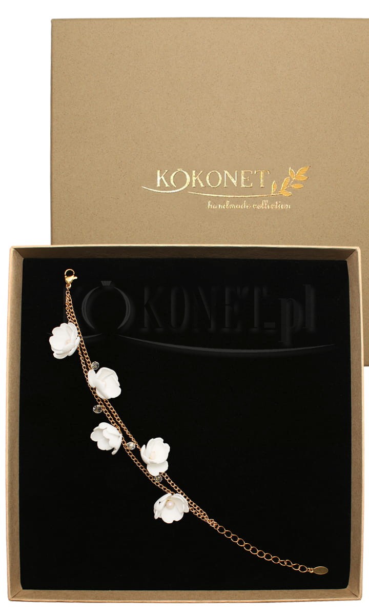 Zlatý květinový náramek PEONY vznikl jako doplněk k sadě svatební bižuterie s náušnicemi PEONY gold. Dva řady řetízků s visícími květy a krystaly odkazují na romantický styl boho. Lehkost a jemnost jsou synonyma tohoto svatebního šperku. Náramek lze regulovat, takže můžete být jisti, že bude odpovídat vaší délce. Pokud potřebujete personalizaci v délce nebo barevném provedení, napište nám - rádi se pokusíme vyhovět každému požadavku.