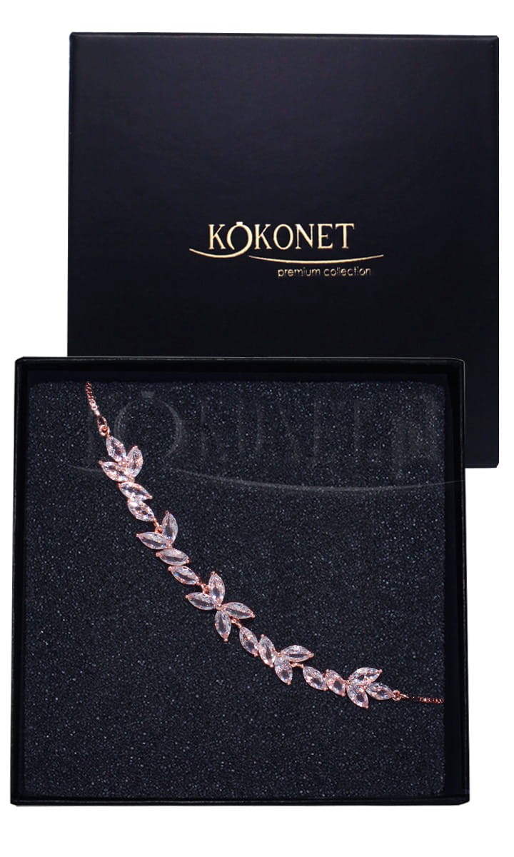 Slunečník na svatbu SEMI je díky regulaci vhodný pro každou budoucí nevěstu. Motivem této zápěstníku jsou lístky, které jsou často přítomny nejen v mnoha svatebních dekoracích, ale také na samotné svatební šatě a v ozdobách vlasů. Díky šestiúhelníkově broušeným kamenům náramk náramku nesmírně září a přidává eleganci každému svatebnímu outfitu.