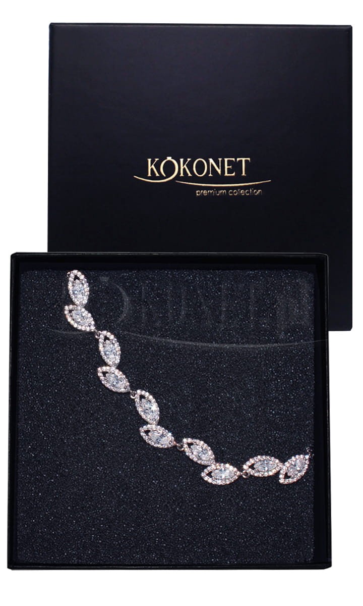 Tento støíbrný náramek s lístky a zirkony je ideální volbou pro ženy, které hledají lehké, a pøitom efektní šperky. Peèlivì propojené detaily vytváøejí záøivý kaskádový efekt, který se krásnì pøizpùsobuje zápìstí a ladí s každým vaším pohybem. Je to dokonalý svatební šperk ve stylu boho, který v kombinaci s ladícími náušnicemi vytvoøí harmonický a oslnivý komplet. Skvìle poslouží také jako pamìtní dárek pro nevìstu nebo družièku.