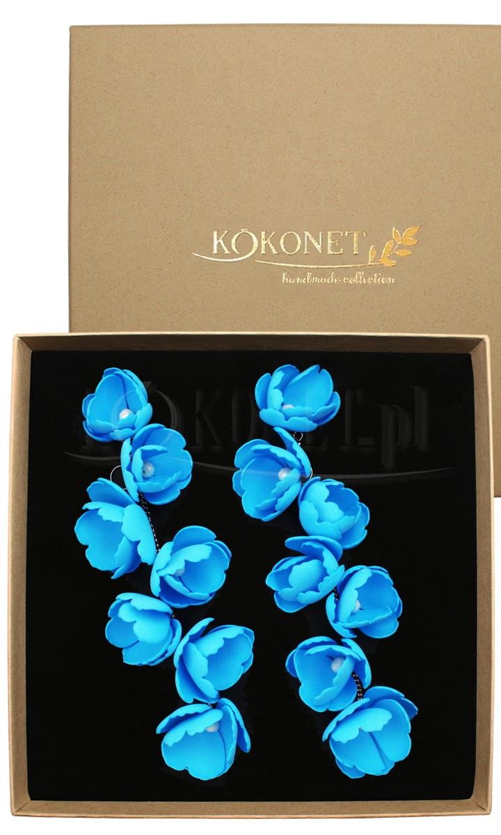 Dlouhé květinové náušnice jsou v současné době horkým trendem mezi doplňky. Náušnice LIDIA vznikly jako ztělesnění snů o věncích květů zdobících uši. Květiny jsou jemné a ručně tvarované z pěny, díky čemuž je každá z nich úplně odlišná. Lehké květinové náušnice v jasně modré barvě ve stříbrném rámu budou zajímavým a neotřelým bižuterním doplňkem.