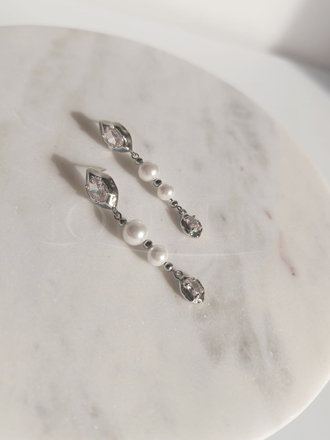 Dlouhé støíbrné náušnice s perlièkou STELLA kombinují klasický saténový lesk perel seashell s moderním nepravidelným a zrcadlovým tvarem zapínání a pøívìsku. Perly na svatbu jsou nadèasovou volbou, a v avantgardním provedení si zaslouží plnou pozornost. Tento unikátní model svatebních náušnic byl vytvoøen v naší dílnì pro nevìsty, které hledají elegantní a neotøelé doplòky, ve kterých lze øíci „ano“.