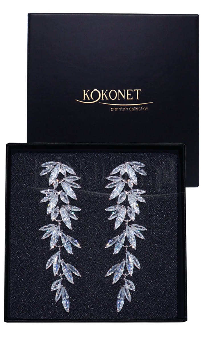 Výjimečné, stříbrné, dlouhé svatební náušnice BLANCHE spojují rafinovanou eleganci s rostlinným motivem. Tvar zirkonu byl vytvořen tak, aby co nejvíce zářil, přičemž zároveň zachovával ultralehkost. K náušnicím jsme navrhli náramek a hřebínek do vlasů stejného názvu, abychom mohli vytvořit dokonale sladěný svatební komplet bižuterie. Tento model jistě zdůrazní výjimečnost a nevšední charakter slavnostní události a díky zdobení krásně zářícími kameny rozjasní svatební vzhled.