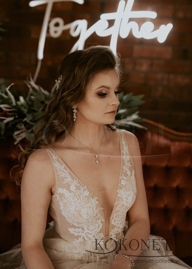 Jemné lístky v ažurovém rámu zdobené nekonečným množstvím zirkonů budou krásným doplňkem pro svatební stylizaci v rustikálním klimatu. Jemnost, lehkost a lesk - tyto tři vlastnosti nejlépe charakterizují náušnice GIULIA. Vyberte si vhodný náramek a ozdobu, abyste vytvořili perfektní svatební set šperků.