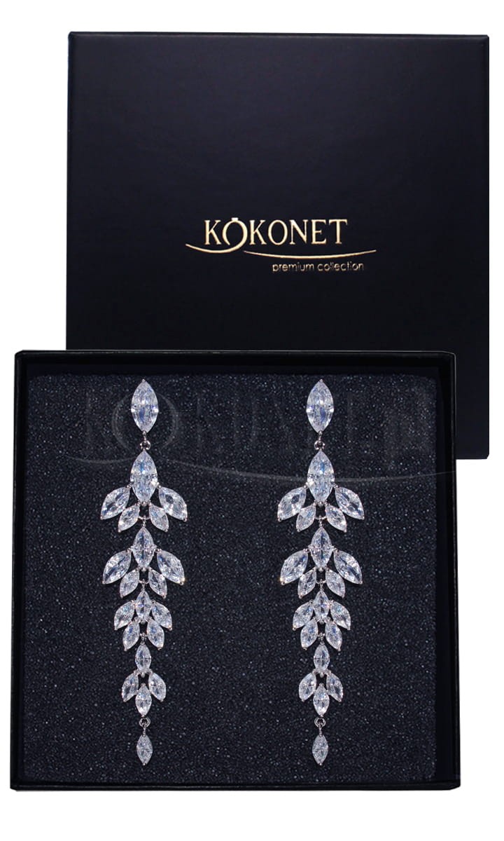 Energetické a efektní, ale stále lehké stříbrné svatební náušnice MALVA jsou kompozicí krásně třpytících se křišťálů v podlouhlém tvaru. K těmto dlouhým náušnicím úspěšně zkombinujete jak náramky, tak náhrdelníky či ozdoby do vlasů, vytvoříte tak okouzlující soubor svatební bižuterie. Náušnice jsou neuvěřitelně lehké, a přesto viditelné.