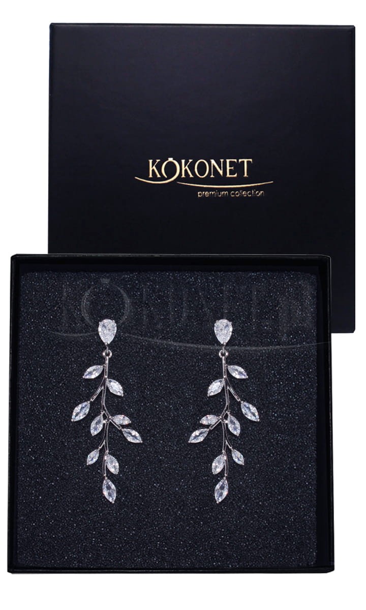 Dlouhé svatební náušnice PEDRIA ve stříbrné barvě jsou ztělesněním přírody - inspirované větvičkou s drobnými listy z cyrkonů krásně vynikají na uchu. Náušnice jsou mimořádně lehké a jemné a díky ručnímu osazení cyrkonů je na uchu neucítíte. S úspěchem je lze použít v rustikálních a romantických boho stylizacích.