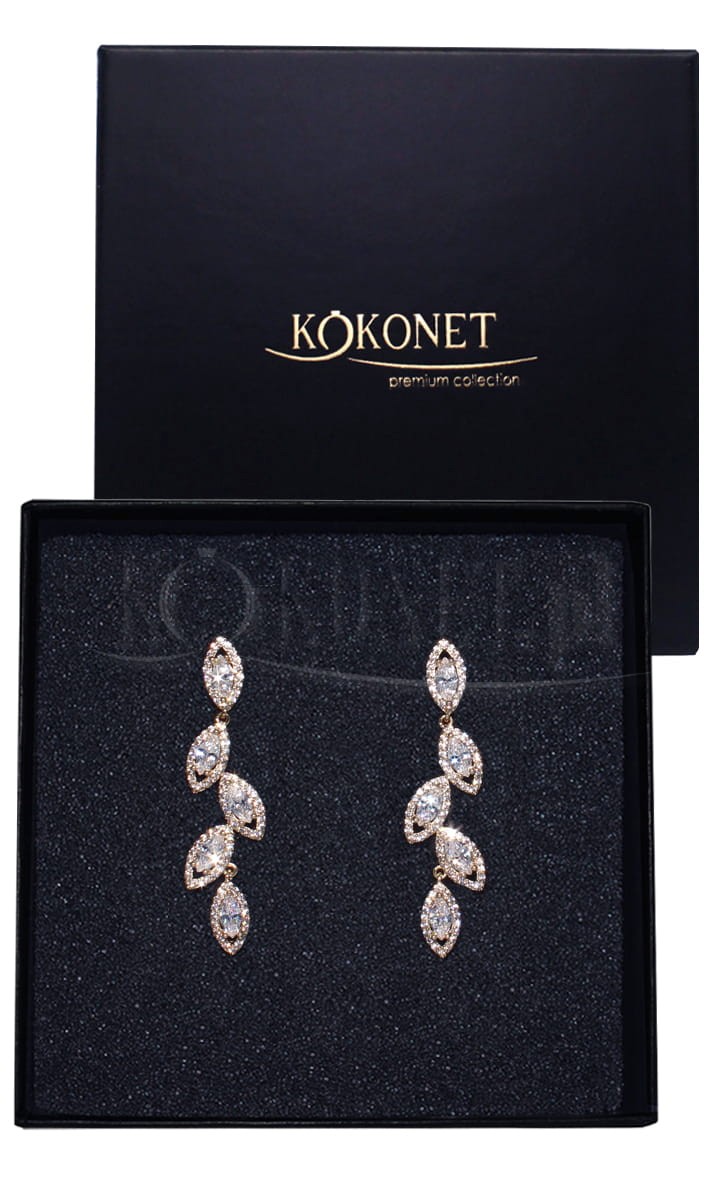Zvolte trochu lesku ve svatební den. Zlaté krátké visací svatební náušnice LUCE dokonale ladí s estetikou boho chic. Tento elegantní model vyniká organickým motivem lístkù zirkonù, které vytváøejí jemnou, rostlinnou kaskádu. Lehká forma a precizní zpracování zajišují, že tyto náušnice s rostlinným motivem harmonizují s lehkými šaty z krajky èi šifonu a romantickými, volnì upravenými úèesy.
