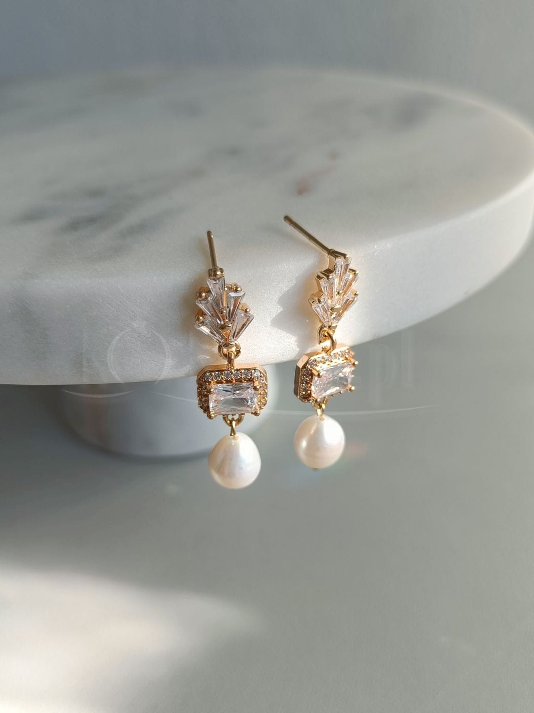 Visací svatební náušnice se sladkovodní perlou a zirkony MARTINA gold
