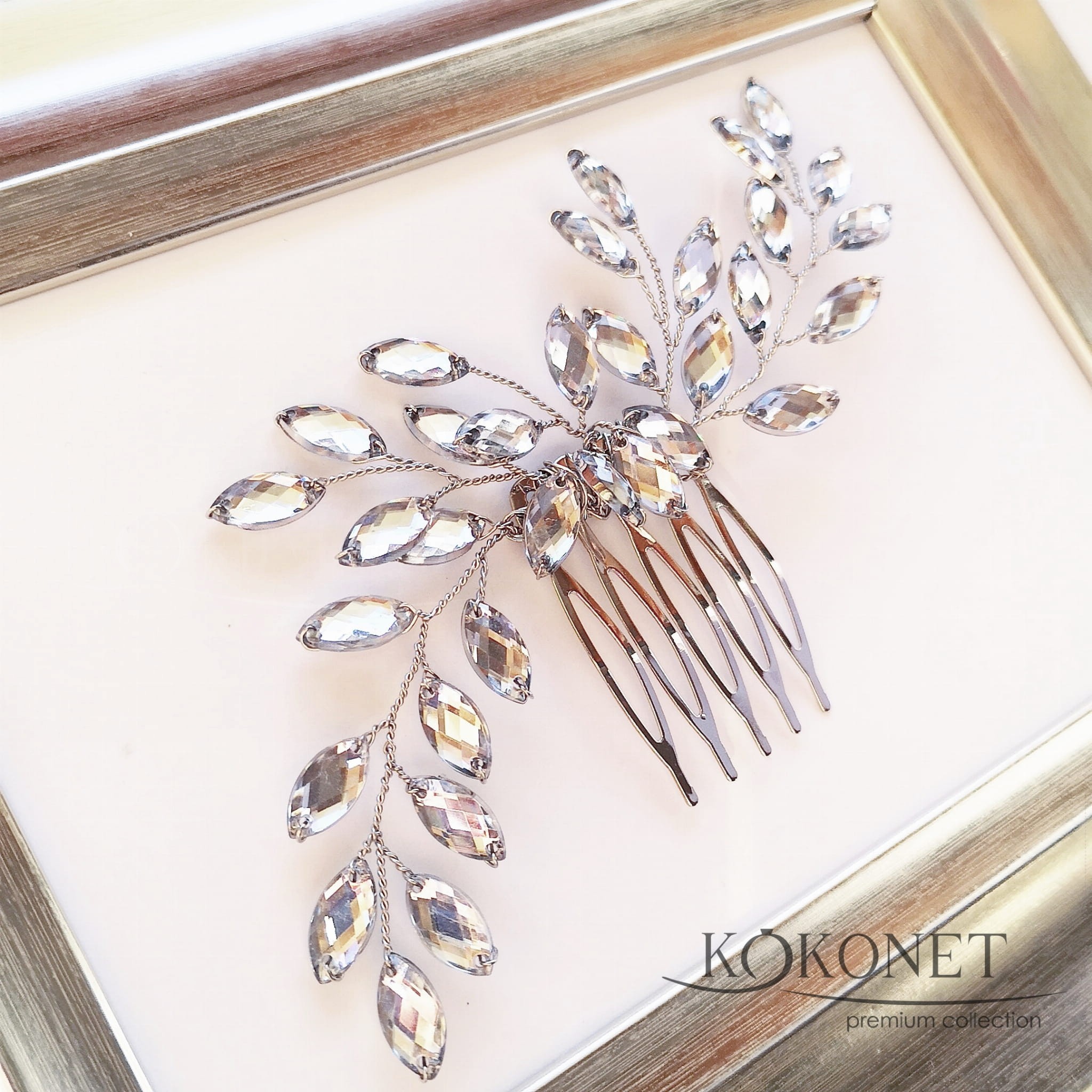 Hřebíček LUNA představuje spojení krásně opalizujících krystalků ve tvaru podlouhlých lístků, uspořádaných do podoby romanticky rozechvěných listů. Ozdobu lze použít k fantazijním účesům a poloupučům s lokny a vlnami.