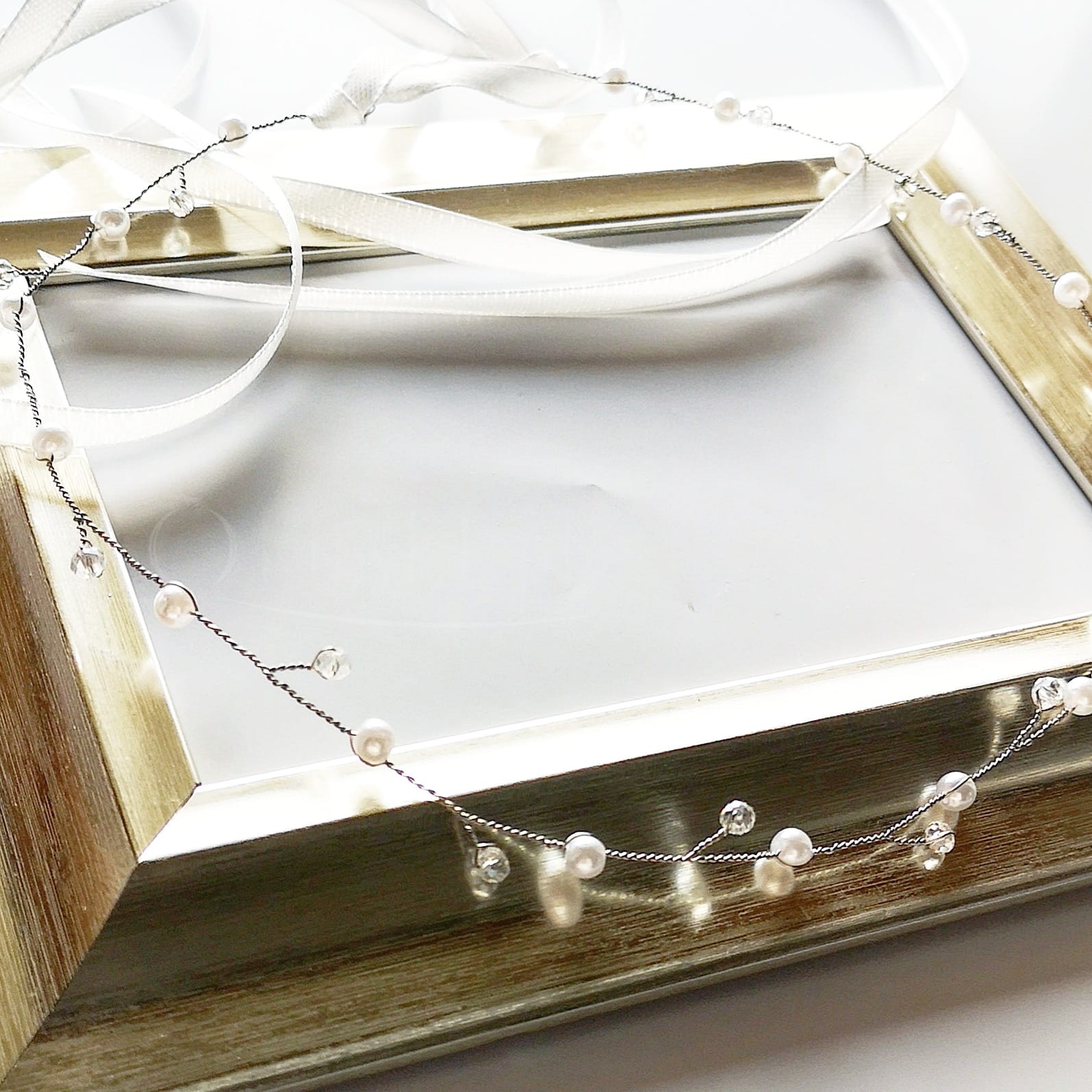 Wěnec CONNY spojuje opalizující křišťálky a jemné perlíky spletené dohromady stříbřitým drátkem zakončeným saténovými stuhami v barvě sněhobílé. Věnec doplní romantické svatební stylizace v boho stylu. Skvěle padne ke skromným a přírodním účesům. Věnce lze nosit ve formě čelenky nebo ozdoby opuštěné na čele, což je v poslední době velmi módní.