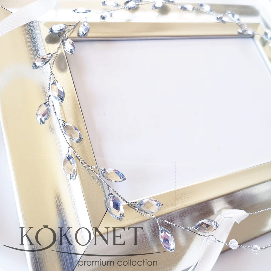 Věnec SOPHIE byl spleten ze stříbrného elastického drátku, kterému můžeš dát libovolný tvar. Hlavní ozdoby věnce tvoří koruna z lístků. Vždy jsi snila o věnci, který bude zářit? Právě jsme splnili tvé sny - ozdoba krásně září, ale je dostatečně jemná, aby nerozvážila ani ty nejjemnější svatební styly. Pokud potřebuješ zlatou verzi nebo růžové zlato, kontaktuj nás, domluvíme se na detailích.