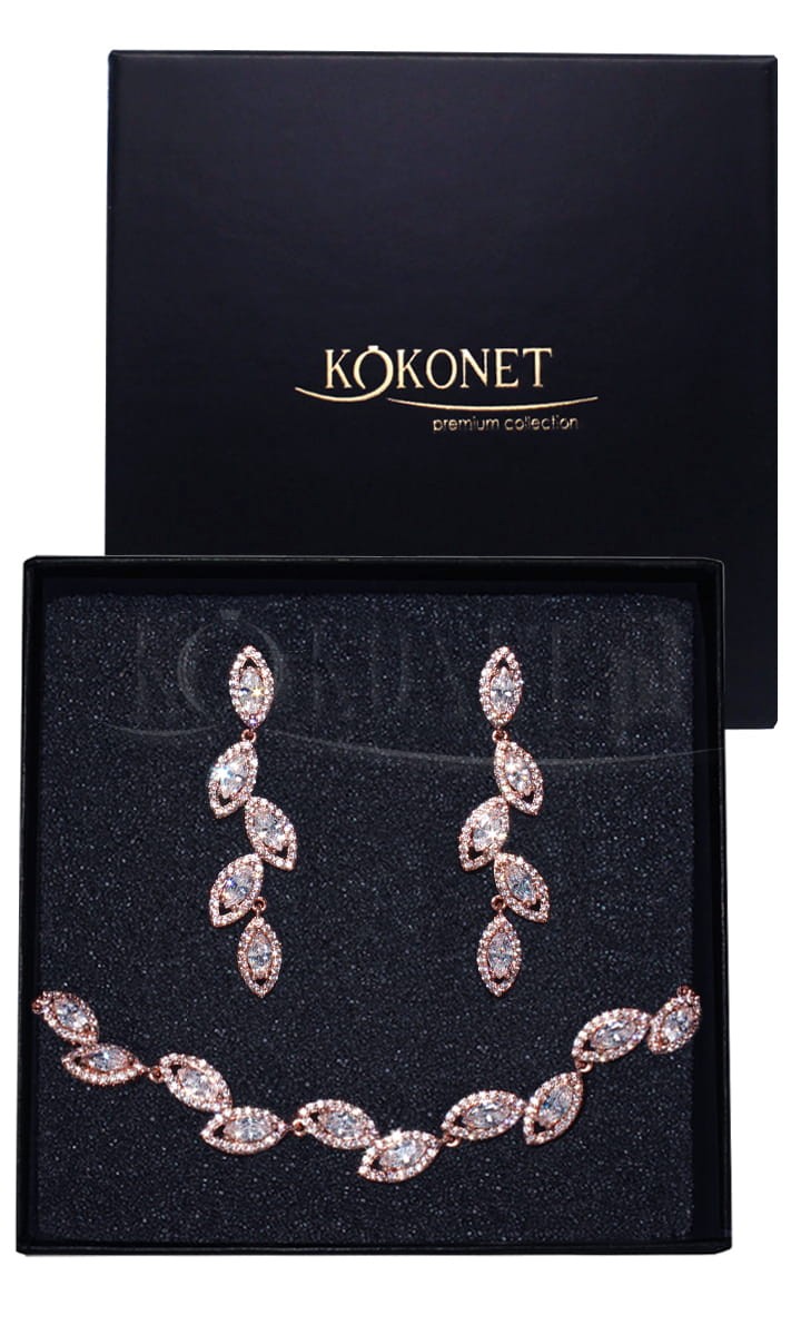 Elegance a šmrnc v rustikálním provedení – tato dvì slova dokonale vystihují svatební šperkový set LUCE v rùžovì zlaté úpravì. Duté lístky spojené do lehké formy visících náušnic a lesklý náramek perfektnì doplní svatební stylizace v boho-glam stylu. Sázejte na pøirozenost a ultra lehkost, abyste se cítila pohodlnì po celou noc tance a zábavy.
