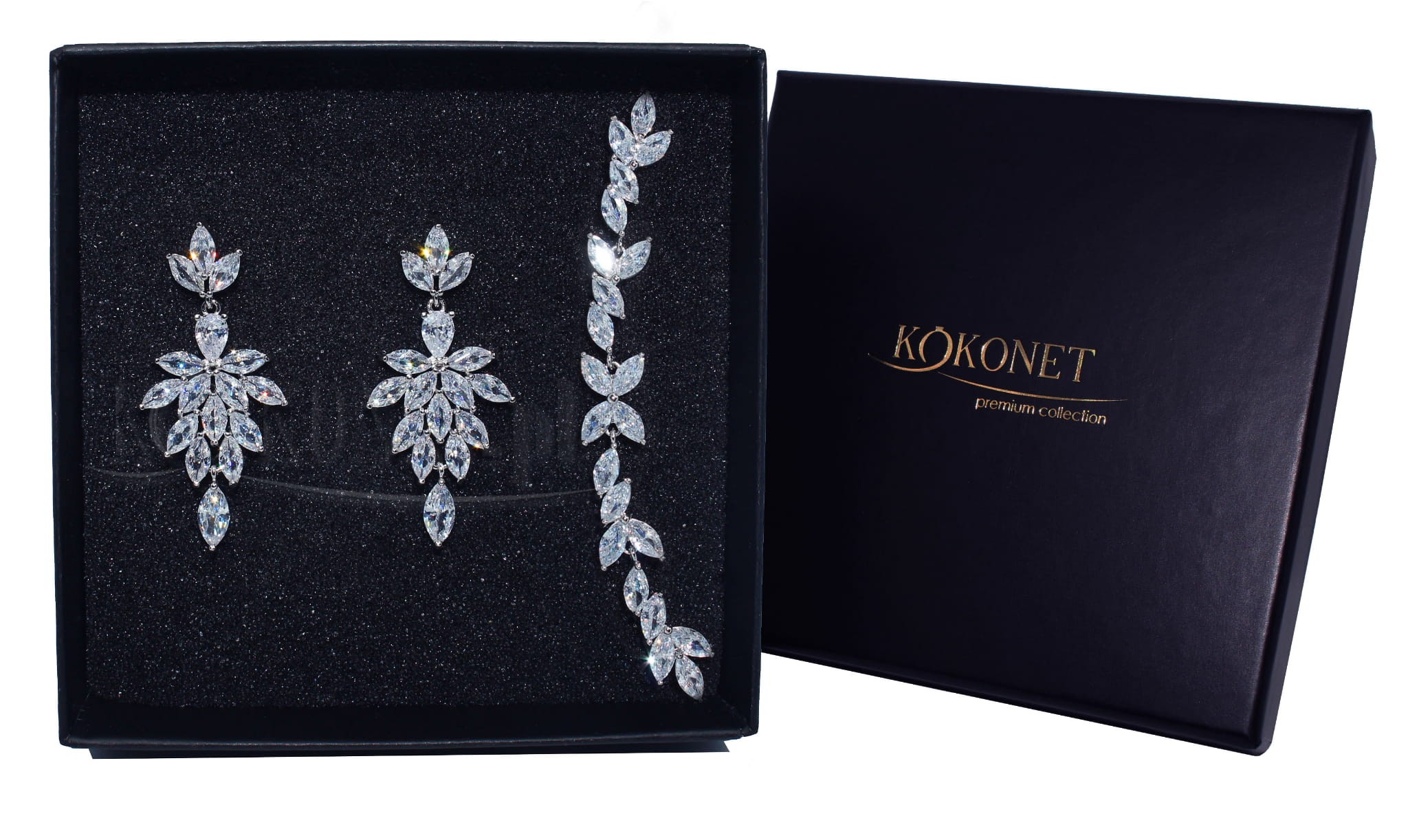 Speciálně navržená klenotnická slitina, hypoalergenní, chráněná proti zčernání vrstvou rhodu. Vysokou estetiku zajišťují ručně osazované šestistěnně broušené kubické zirkony třídy AAA+.