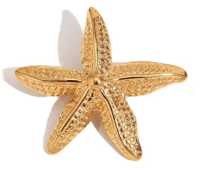 Zlatá stylová brož s motivem mořské hvězdice je stylový doplněk, díky kterému obyčejné sako, svetr nebo šaty získají charakter. Brož je vyrobena z nerezové oceli, takže vám bude sloužit po dlouhou dobu.