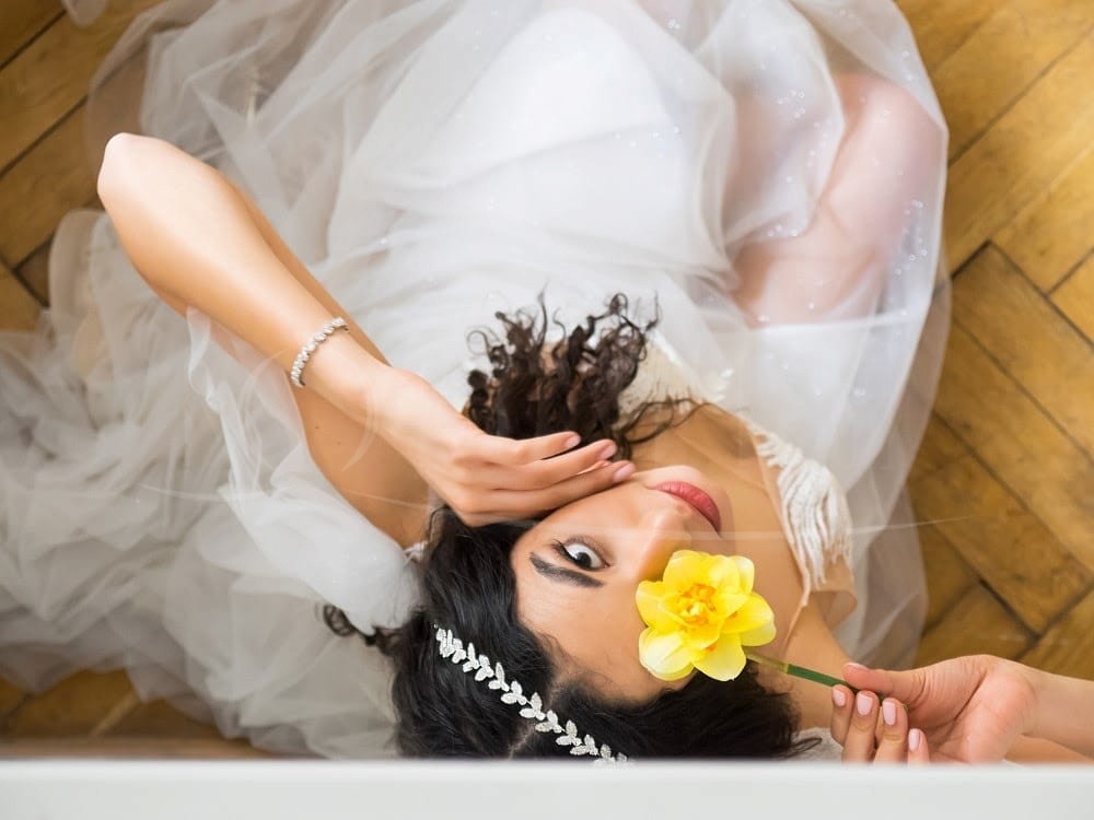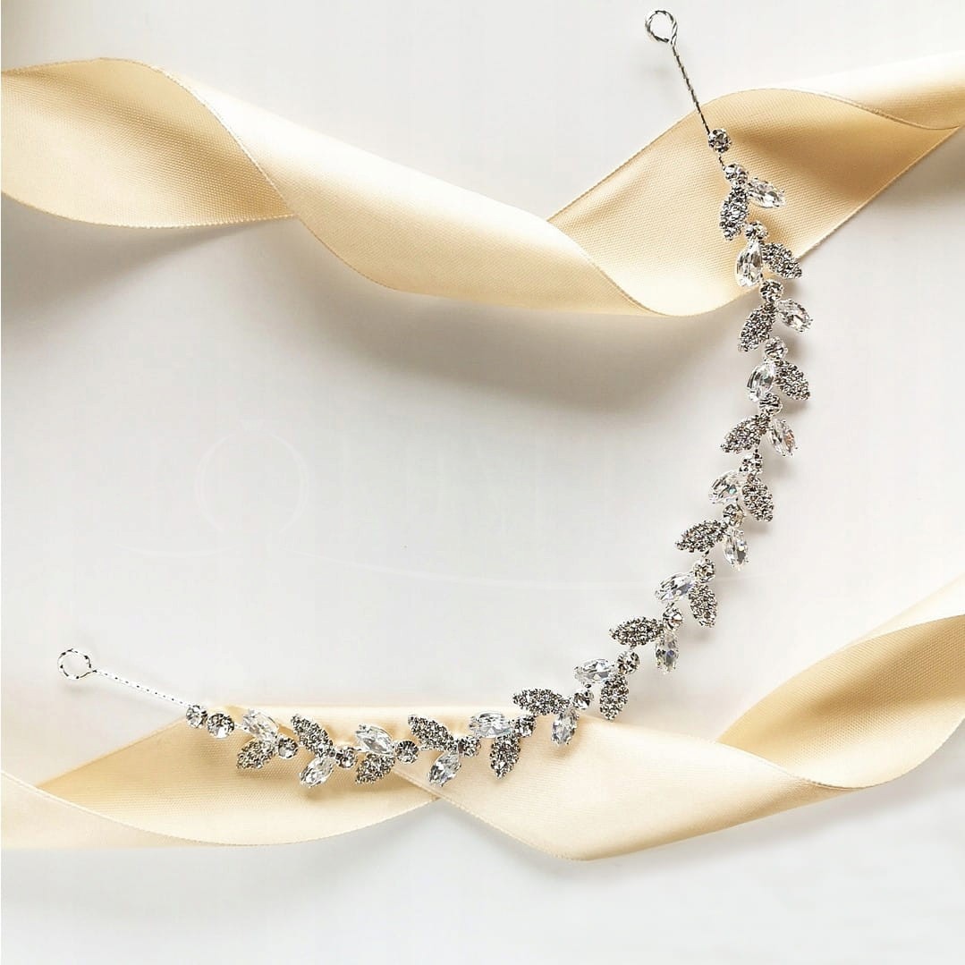 Dekorativní čelenka do vlasů je nedílnou součástí mnoha svatebních stylizací - ozdoba výše vyrobena z elastického drátku, který se přizpůsobí tvým preferencím. Ozdoba krásně třpytí ve slunečním a večerním světle, rozjasávajíc celou stylizaci. Motiv lístků v kombinaci s mnoha zirkony bude ideální volbou pro ty, kteří hledají kompromis mezi stylem boho a glam.