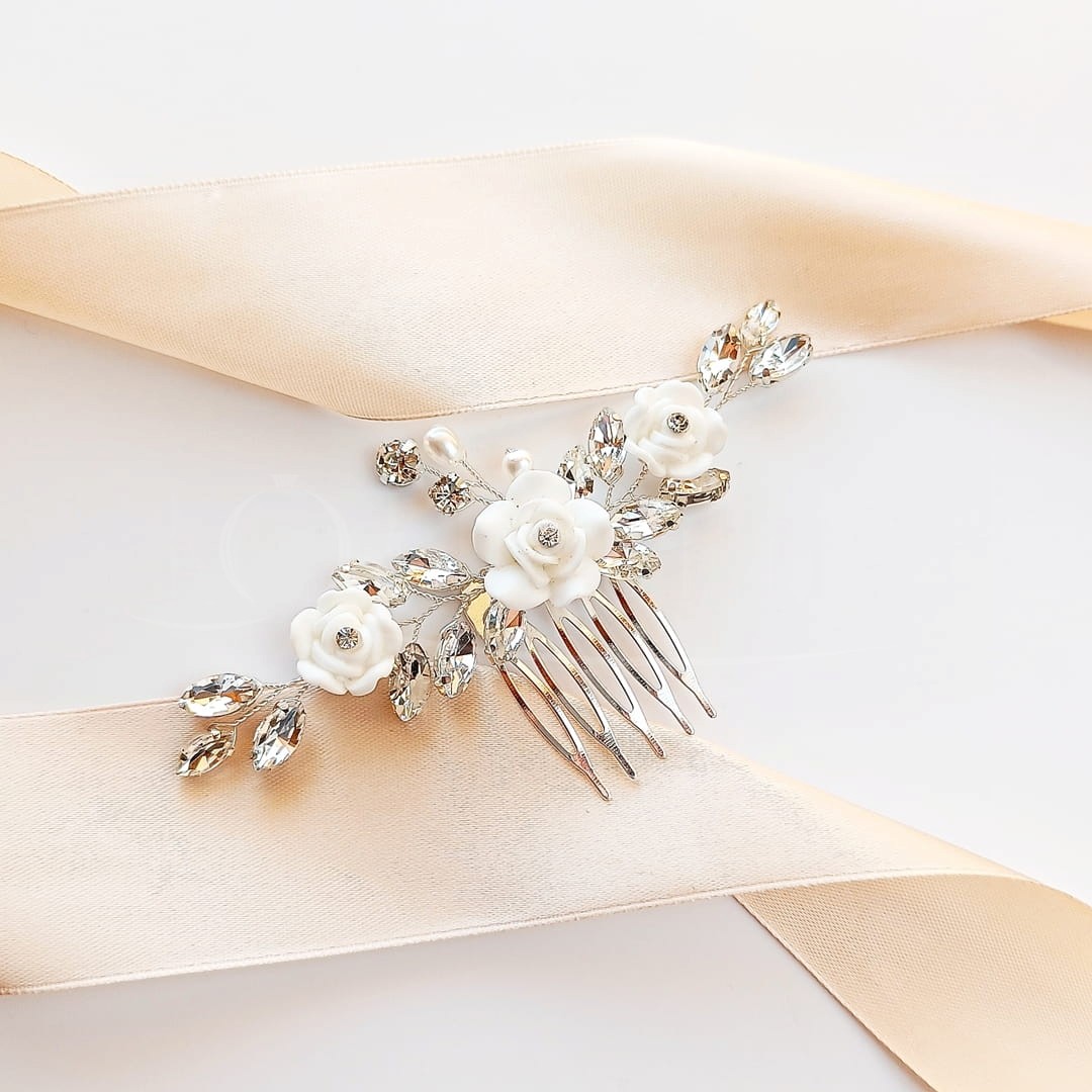Hřeben na vlasy se stříbrnými květy pro svatbu