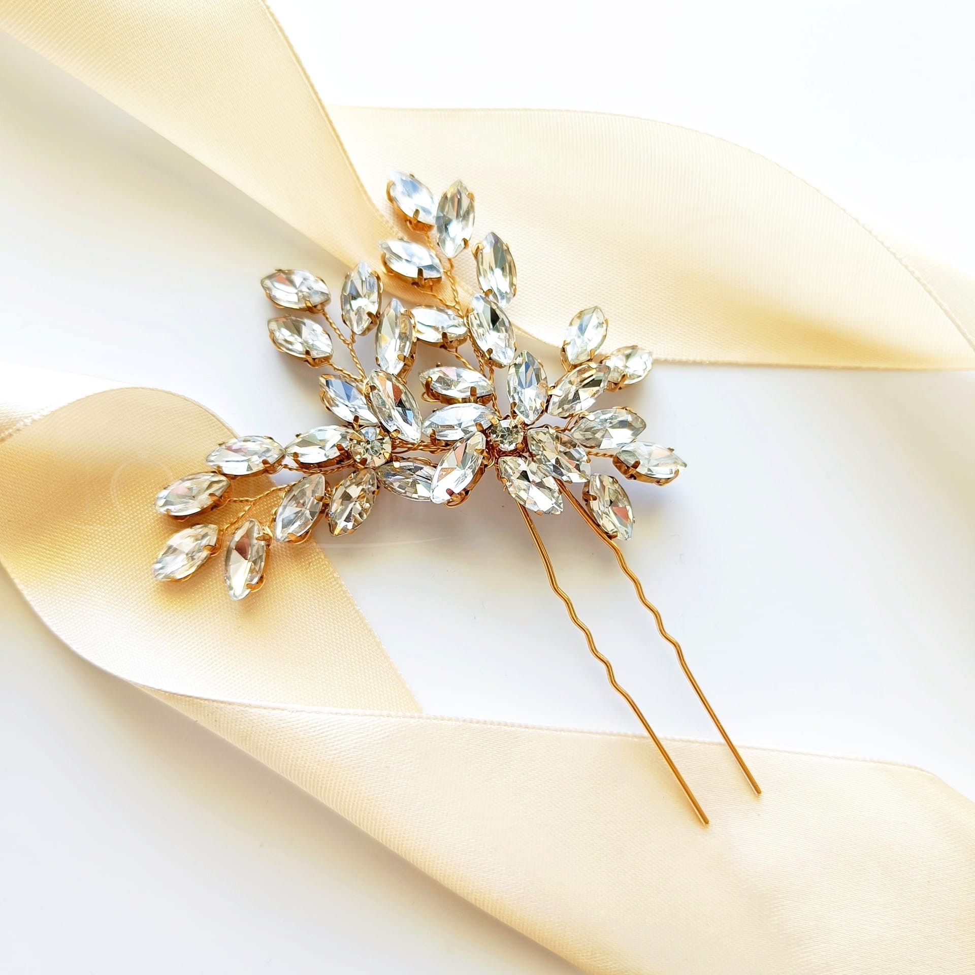 Ozdobná zlatá vlásenka do vlasů, zirkonové větvičky