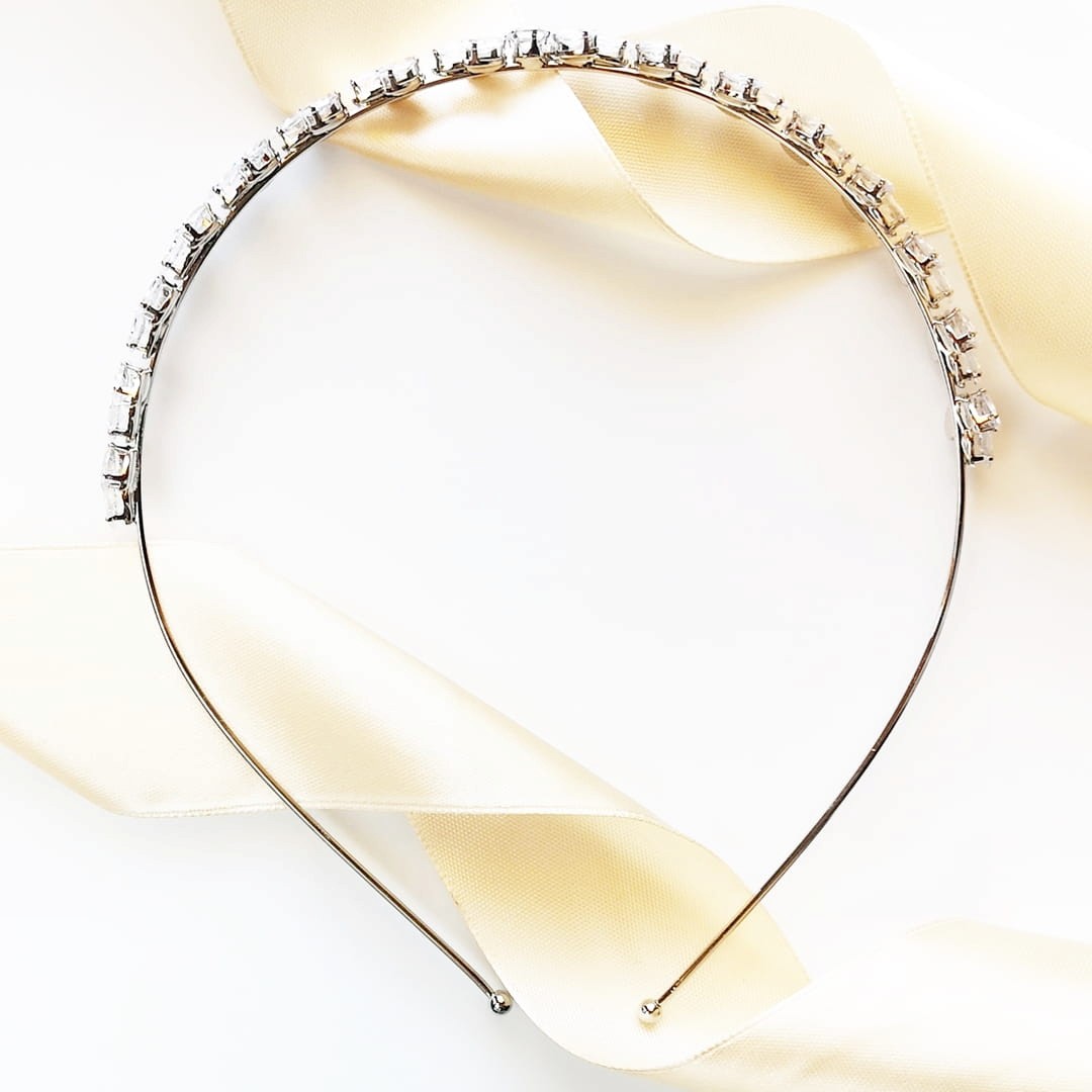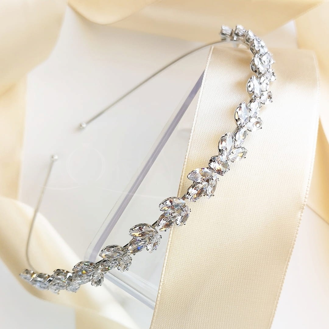 Stříbrná svatební čelenka se zirkony a obrácenými listy