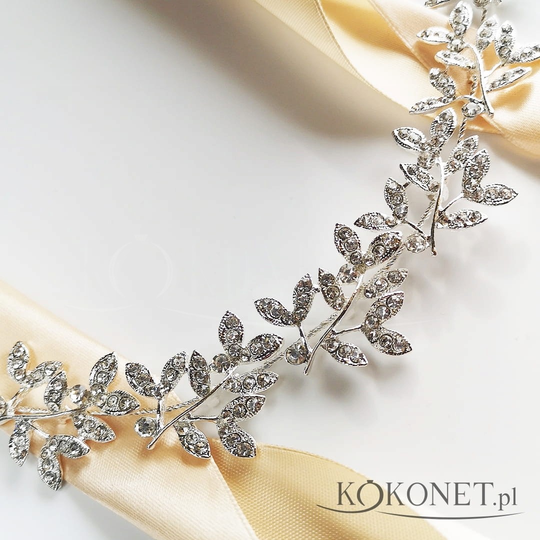 Stříbrná větvička čelenka s listy a zirkony