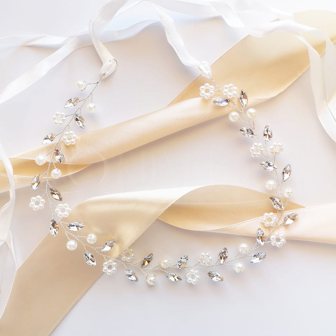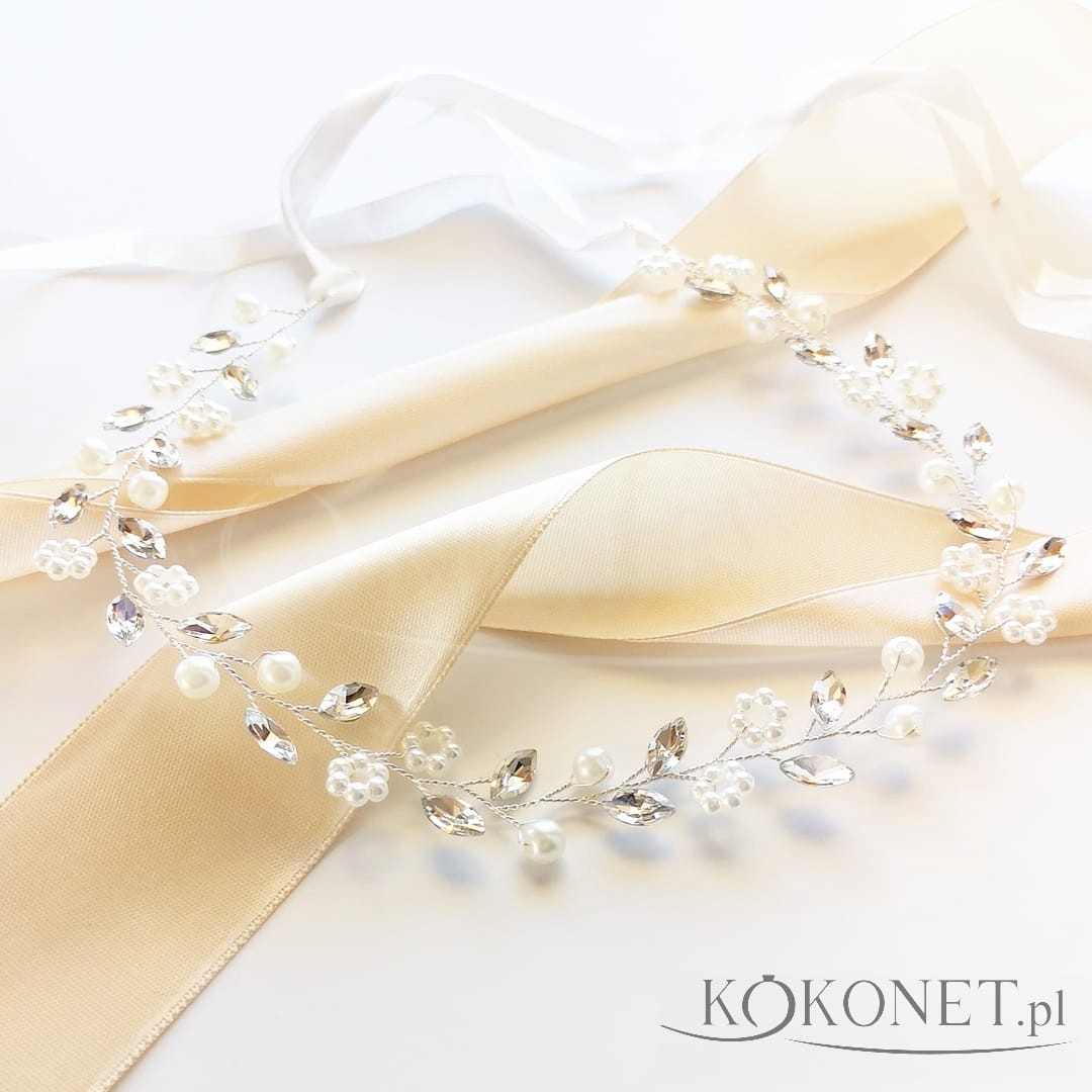 Jemný bižuterní věnec se zirkony a perlami ve stříbrné barvě bude skvělým doplňkem pro každý rustikální outfit. Můžete si ho nasadit na čelo nebo jako opasku. Díky elastickému drátku ho můžete libovolně formovat.