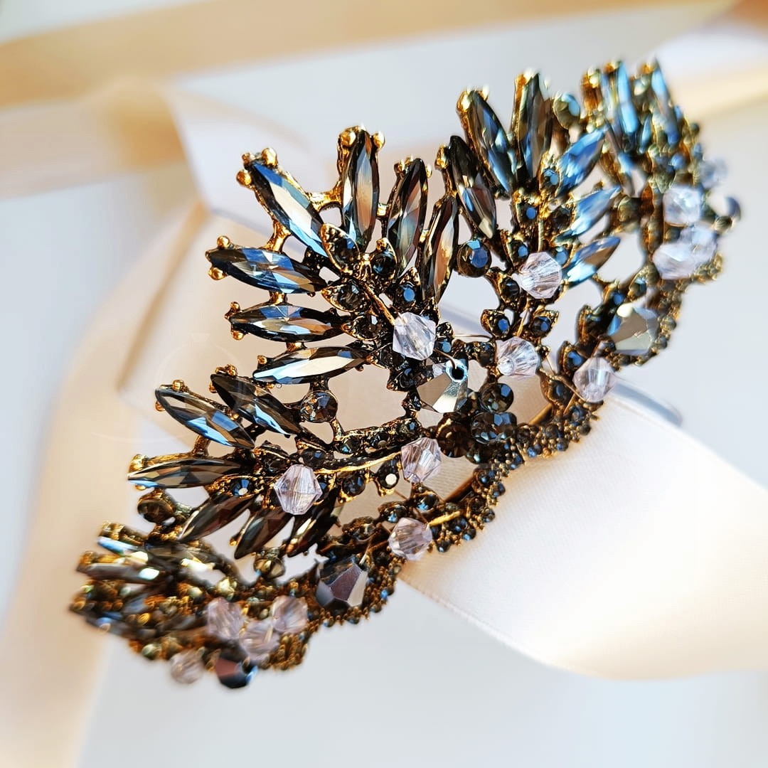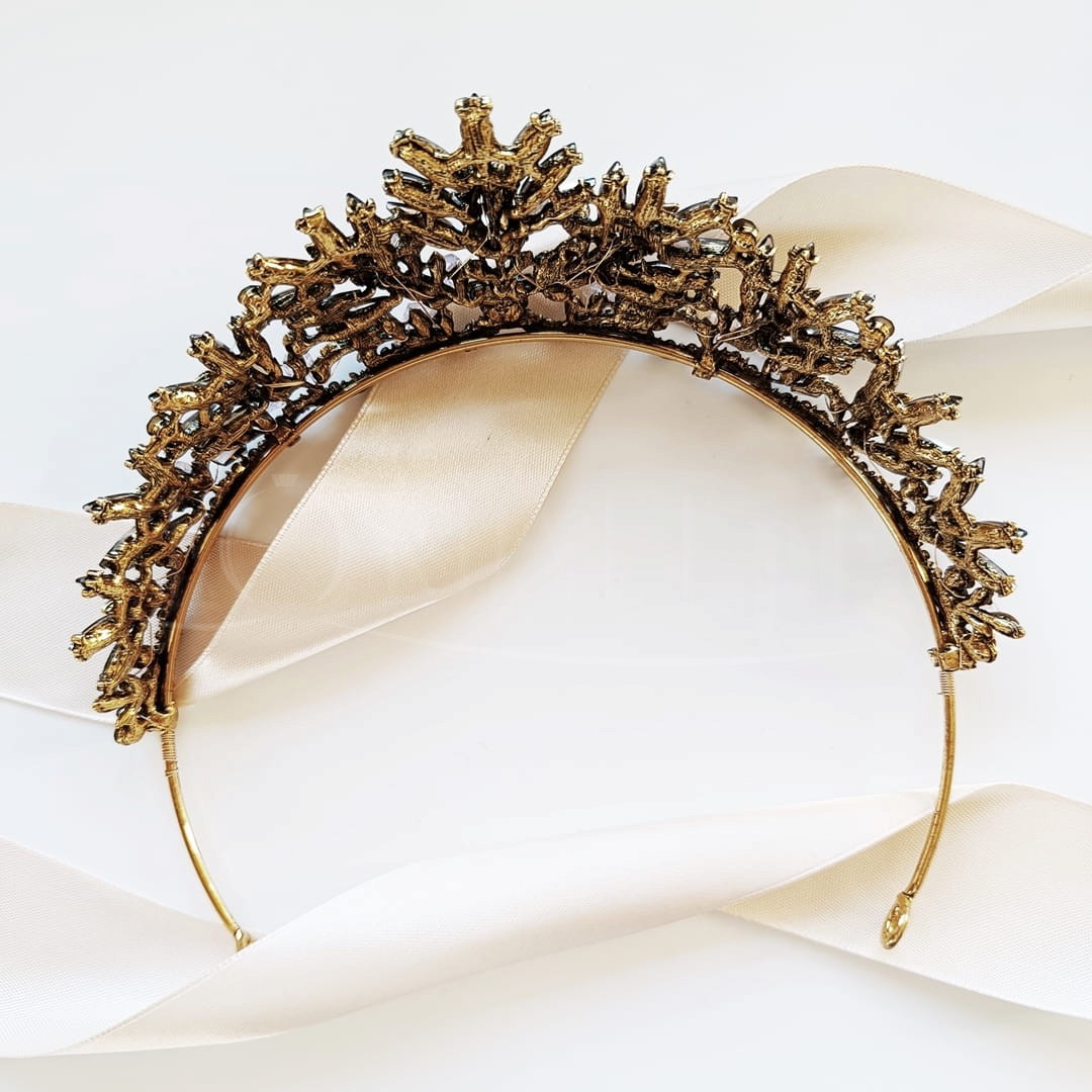 Zlatá černá korunka do vlasů se zirkony tiára diadém