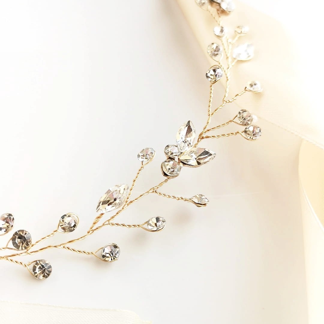 Zlatá svatební čelenka se zirkony - jemná a lesklá