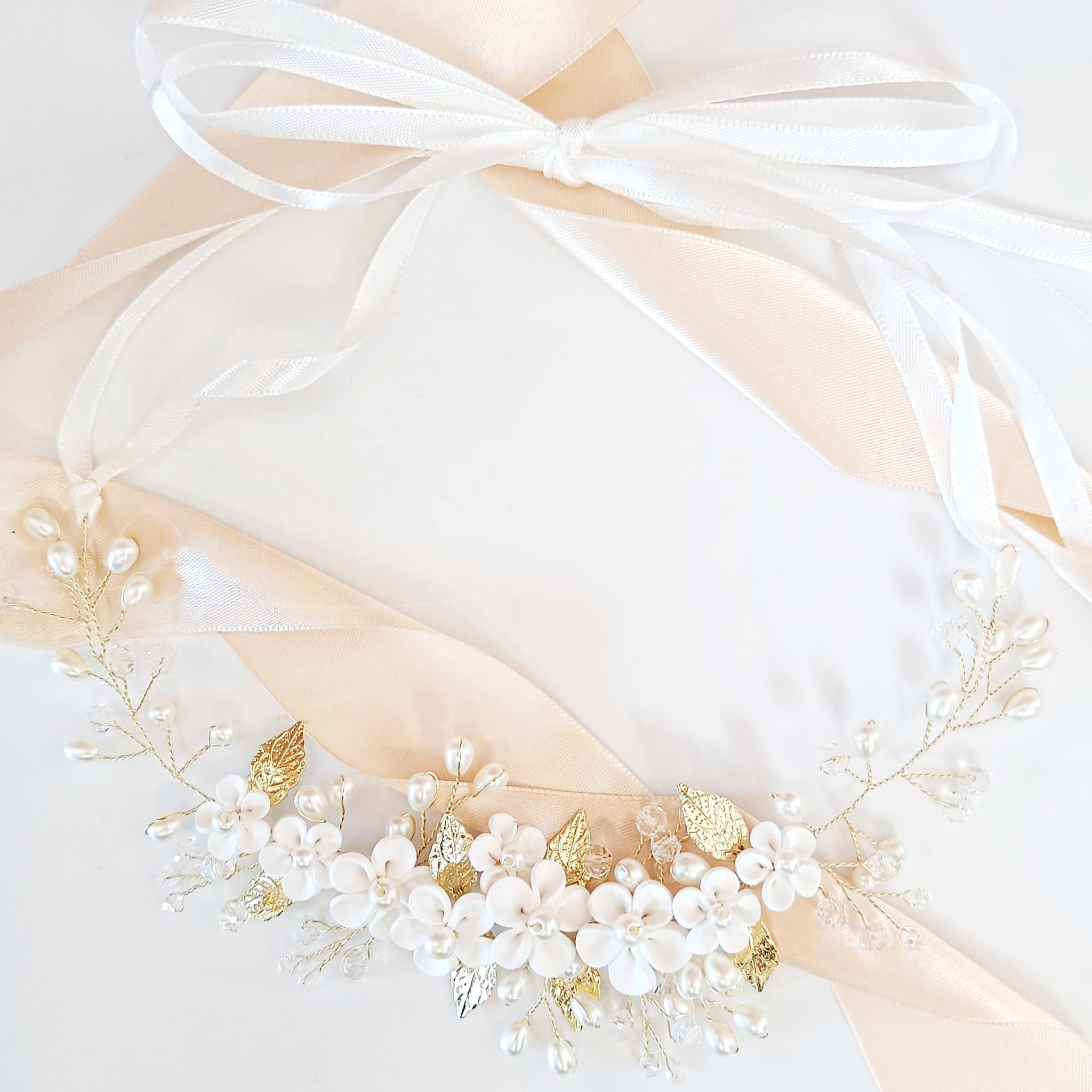 Zlatý věneček s květy lístky a perličkami krásný