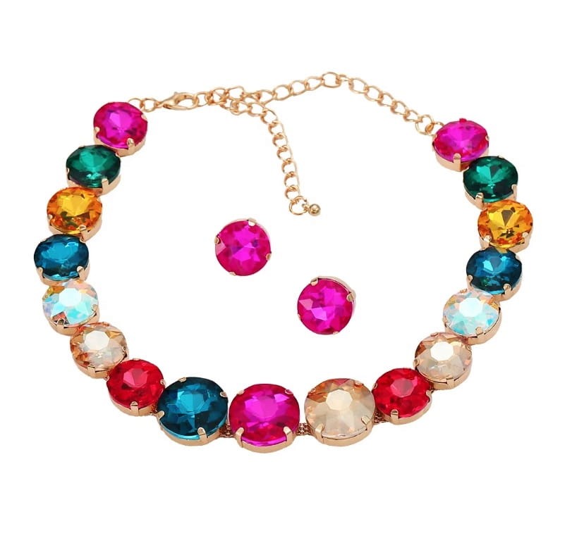 Sada šperků náhrdelník a náušnice zlatá barevné